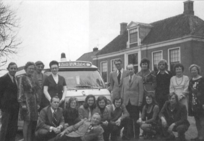 Staand V.l.n.r. Kees Bakker, Vera Bakker, dr. Henk Scheer. Mien Kayer, Frans May, dr. J. Pool, Flavia Schagen-Groot. Andre Wester Tiny Venneker-Kayer, Ida Groot-Braakman.