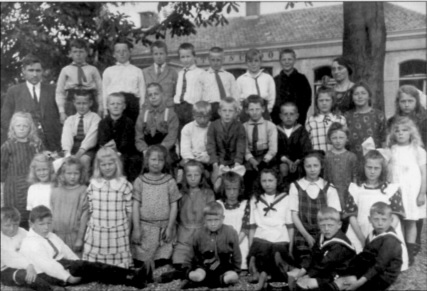 tweede rij: Simon Kort, Herman Bakker, Gijs Houter, Antoon Schermer, Pieter Donker, Cor Hoek, Gert Bossen, Nel de Vries, Alie Appel en Aafie May en dan staand Pietertje Dekker;
