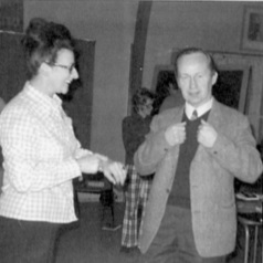 Dr. Pool in een karakteristieke houding samen met Mien Kayer.