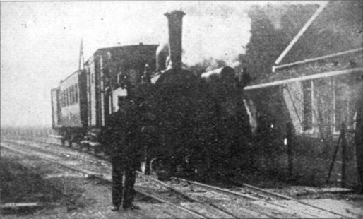 Een gecombineerde stoomtram in Hoogwoud. Goed zichtbaar is ook het dubbelspoor.