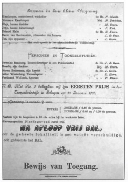De eerste prijs behaald op 14 januari 1900 te Schagen met het blijspel Tooneelstudien