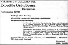 Advertentie van de Gebr. Bosma, geplaatst in de Feest-courant van september 1945.