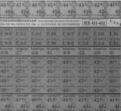 Verder zette de Duitse bezetter de schaarse goederen op de bon om zo de verdeling ervan te regelen. Elk gezin kreeg bonnen (textiel, suikerbonnen, etc.) afhankelijk van de gezinsgrootte. Elke bon gaf recht op een bepaalde hoeveelheid goederen die bij de middenstand gekocht konden worden. Jan ging met deze bonnen naar het distributiekantoor in Spanbroek, waar de bakkerszoon Simon Wit van De Gouwe de verantwoordelijke man was. Daar ruilde hij ze in voor grote couponnen, waarmee Jan weer bij de groothandel kon kopen. Zo was de cirkel rond. Alle verkopen moesten van de Duitser geregistreerd worden om zwarte handel en woekerij te voorkomen. Dit systeem werd trouwens deels omzeild door een levendige ruilhandel van produkten in natura. Jan had trouwens een voorzichtige boekhouder die hem vertelde alles officieeI te doen.