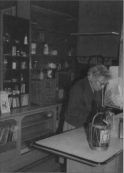 Vrouw Pater en Jan Pater in 1993. Pater had zijn winkel opgevuld met spullen die hij nog overhad. Hiermee krijgen we een indruk hoe de winkel vroeger was. Het was alleen wat voller volgens Pater.