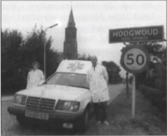 De ambulancedienst Hoogwoud in 1997. V.l.n.r. Luut v/d Berg, Sandra Voerman-Klerk, Anna Punt-Jansen, Mieke Ligthart, Herman Siepe, Ineke van Vught-Weel, Kees Blankendaal, Jeanet Glas, Jan Koopman, Paul Kuijpers, Theo Laan en Kees Mooij.