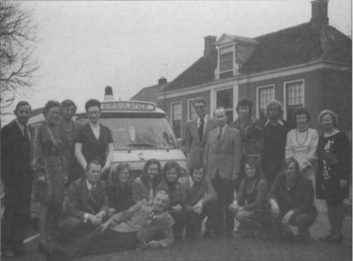 Foto gemaakt okt/nov. 1974. Staand v.l.n.r. Kees Bakker, Vera Bakker-Slijkerman. dr. Henk Scheer, Mien Kaijer, Frans May, dr. Joh. Pool, Flavia Schagen-Groot, André Wester, Tiny Venneker-Kaijer, Ida Groot-Braakman. Zittend: Jaap Verkerk, Afra Mooij-Dam, Cunera Vlaar, Annie Wester-Meilink, John van Zijp, Gré Mooij en Kees Mooij. Liggend: Rein Oostenveld.