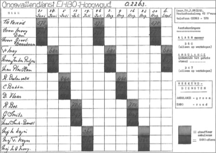 Secretaris Th. J. Vriend (overl. 27 januari 1981), mede dankzij zijn inspanningen kreeg de Ongevallendienst Hoogwoud de Buick ambulance van de gemeente Texel in bruikleen.