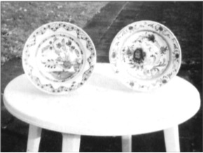 Enkele van de gerestaureerde delftsblauwe borden uit +/- 1680-1720 (diam. 35 cm). Deze borden staan weer op de schotelrand in de woonkamer.