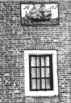 Doch het merkwaardigste is het hoekje in de noordgevel waarin de zeventiende eeuwse gevelsteen zit met een oeroud raampje, gewapend met twee stevige ijzeren spijlen. Of dit bestemd was om de vrijers buiten de deur te houden is ons niet bekend. De westgevel is in kleine keiharde steentjes gemetseld, Het moet wel een heel bijzondere metselaar zijn geweest! Vroeger werd namelijk meestal netjes in `verband' gemetseld. maar deze metselaar had zo zijn eigen verband, voeg op voeg. Mede daardoor is het een heel aparte voorgevel geworden. De restauratie werd voltooid op 30 juni 1962 (WFON 29 (1962) Kroniek van West-Friesland).