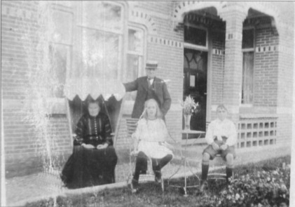 Trijntje Glas-Pijper en Simon Glas Pzn, die dit huis aan de Gouwe lieten bouwen. Verder zijn op deze foto uit 1923 te zien: Trien Klaver-Glas en Jacob Glas Czn.