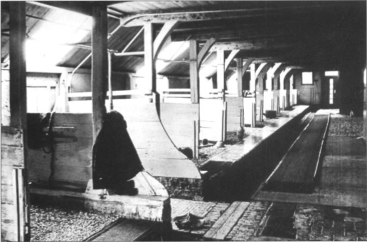 De veestal liep door beide stolpen heen.Op de 'lange regel' waren 28 stallen.