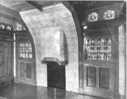 Naast de schoorsteen bevinden zich twee pronkkastjes voor het servies van de familie. Rond de kamer loopt een rand waarop blauwe borden staan. Van de originele Delftsblauwe borden zijn er nog slechts twee aanwezig. De overige zijn waarschijnlijk verkocht in de crisis van rond 1880 en vervangen door borden van Regout uit Maastricht. Deze zijn van ongeveer 1900. Deze zijn inmiddels weer vervangen door de gerestaureerde borden van de eerder gemelde bodemvondsten.