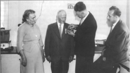 Cees Muntjewerff is geboren op 19 april 1920 aan de Mijzerdijk (polder), eveneens van boerenkomaf. Hij was ook al als controleur in Schellinkhout werkzaam geweest. Na zijn sollicitatie en een proeftijd van 3 maanden volgde een vaste aanstelling op een voorlopig salaris van f 110,- per maand. De proeftijd werd beschouwd als leerperiode en moest je als leergeld beschouwen (daar moet je anno 1999 mee aankomen!). Cees kwam in de kost bij de familie Veerman en leerde daar dochter Gré kennen. Ze werden verliefd en trouwden in 1945. Zij bleven bij de familie Veerman inwonen, totdat in mei 1952 het karakteristieke renteniershuis aan de Schoolstraat 39 (gebouwd anno 1913) door de Rundveefokvereniging werd aangekocht voor de prijs van f 7.000,-. Het werd verbouwd tot dienstwoning met kantoor en laboratorium. In 1953 volgde de officiële opening door een gedenkplaat te onthullen in het mooie kantoor. Een geweldige verbetering, waardoor de werkzaamheden nog beter uitgevoerd konden worden. Cees en Gré hadden nu hun eigen stekkie.
