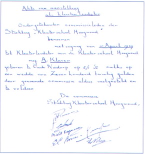 Aanstellingsbrief van juffrouw Alie Klaver.