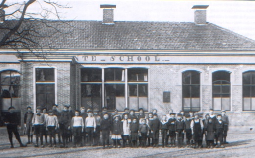 Op deze foto uit 1912 zien we de Gemeente-school van Hoogwoud.