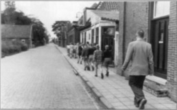Jaap Slooten met de kinderen naar de gymles in het dorpshuis.