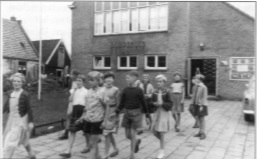 In de jaren dat Froukje de openbare school bezocht bleef zij tussen de middag 'op brood' zoals dat toen heette. Ze had een heel lang schoolpad; ze woonde in haar jeugd op de Gouwe. En dan dagelijks vanaf de Gouwe naar de school in de Kerkelaan is wel behoorlijk lang, vooral in de winter. Onder de middag werd er wel gedanst vertelde zij, maar muziek hadden zij natuurlijk niet, dus zongen ze dan zelf. Van meester Runeman weet Jan Davidzon, dat het een bekwaam schaker was en dat hij de liefde voor het schaken aan veel van zijn leerlingen heeft overgebracht. Meester Oepkens kwam van Terschelling en zijn specialiteit was tekenen. Opvallend is dan ook, dat er veel oud-leerlingen zijn, die nog een tekening in hun bezit hebben die onder zijn leiding is gemaakt. Op het schoolplein werd er veel aan slagbal gedaan, vertelden Jan en Froukje, maar ze deden ook aan bokspringen. Veel van onze lezers weten zich dat nog wel te herinneren. Je sprong dan op iemand zijn of haar rug en riep dan; 'Wat heb ik in mijn hand, hakmes, vork of lepel?' Met je hand maakte je dan een bepaald gebaar en werd het goed geraden, dan was je af.