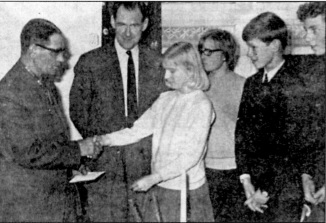mevrouw Breebaart, Burgemeester Breebaart, Tiny Vlaar-Zutt en Tonie Kaijer-Rood.