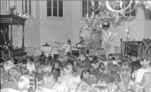 Elly en Rikkert Zuiderveld in een volle NH-kerk van Hoogwoud (voorjaar 1973).
