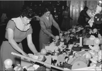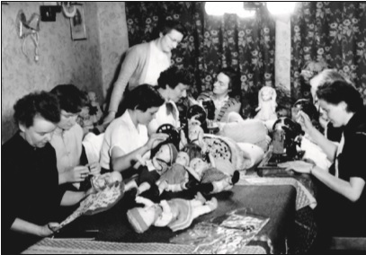 De meisjes en de vrouwen uit de plaatselijke vrouwenverenigingen hielden zich bezig met de vervaardiging van poppenkleding. Diverse speelgoedfabrikanten in het land werden aangeschreven voor de levering van niet-aangeklede poppen. Speelgoederenfabriek ’t Poppenrijk meldt aan het Hoogwouds Rampen Comité dat het gaarne een aantal poppen beschikbaar wil stellen tegen kostprijs. Daarnaast maakten de vrouwen ook huishoudelijk textiel en kleding.