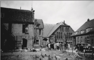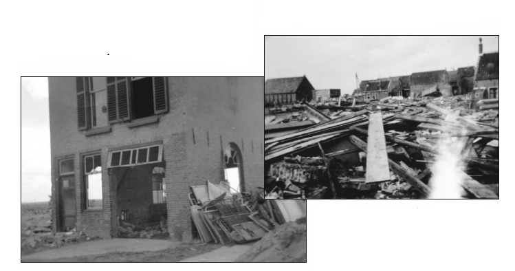 Beeld van Poortvliet. Toen het water gezakt was trof men huizen zo aan.