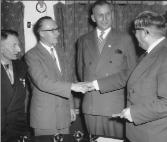 Het dagelijksbestuur van de afdeling 25 jaar in functie in 1959.