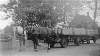 In de jaren dertig ging men al meer over op vrachtwagens en raakte het vervoer met paard en wagen wat uit beeld. Maar niet voor de heer Daan van Dolder, die later het Beetsland kocht aan de Koningspade 26 in Hoogwoud en daar ging boeren. Hij woonde voor de oorlog met zijn gezin in Zandwerven. Hij begon als arbeider in de melkfabriek, maar dat was voor hem geen goed klimaat, hij was een buitenman. Tien jaar lang is hij melkrijder geweest en reed met twee paarden voor de kar. ‘Ik was altijd zuinig op mijn paarden,’ vertelde hij, want de andere dagen moesten zij het werk ook weer aankunnen. Behalve dat hij melk ophaalde en boter en kaas meenam voor de boeren, verkocht hij ook boenders, borstels en dweilen, al wat er op een boerderij nodig was aan schoonmaakartikelen.