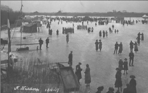 19 jan: Borgesius, voorzitter der 2de Kamer overl: oud 70 jaar en 2 dagen: zijn vrouw was twee dagen eerder overl: 21 jan: het begint best te vriezen, uit een oosten, met een nacht rijden zij al schaatsen: P. Saal zijn plaats verkocht, van Terdiek O-Niedorp aan P. van der Burg voor 70 of 75.000. P. Saal gaat na den plaats van not: de Boer te Wieringerwaard, bewoond door D. Saal die gaat na Alkmaar. Dinsd: 24 jan: G. Muis R[ijks] Veearts te Schagen overl: oud 54 jaar, in Stn Elisabets Gesticht te Alkmaar. “Wat vriest het”. Domine Dijkema verlaat Hoogwoud, gaat na Friesland. Feb: Duitsland: begint den duikboot oorlog, over den geheele zee: Nog eene vaargeul vrijgelaten. Wij krijgen nu 4 ons brood per hoofd; petroleum 2 kan in den 14 dagen a 44c per kan, weinig steenkool, avijn van alles haast niets, en 3 maal duur zoo; geen voer voor den beesten, ’t gevogelte kippen enz; worden allemaal opgeruimd. Amerika verbreekt den vriendschap met Duitsland. Vanaf zat: 20 jan: vorst, tot 10 feb: alle dagen oostenwind, met helderen zonneschijn, den eene dag, is gelijk den andere, zonder een vlokje sneeuw, (Dat was voor ‘t land slecht, vele dooie plekken). Overal is het ijs sterk, duizenden bij duizenden menschen zijn dagelijks op het ijs. Iedere plaats heeft hard arren op het ijs.