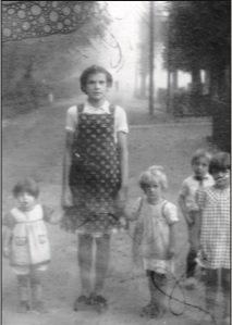Links van haar Vera, rechts Gretha, Tiny en kleine Martien.