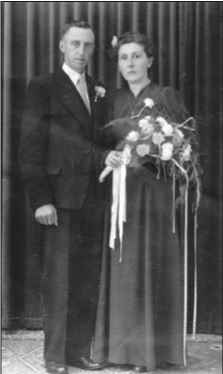 Trouwfoto van Jan Niele met Nelie Beemster op 4 juli 1946.