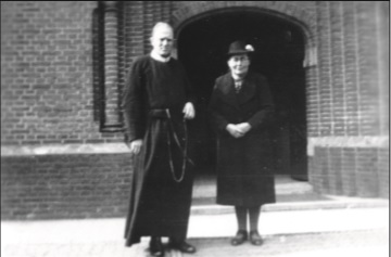Pater Stromer genomen voor de kerk in Hoogwoud.
