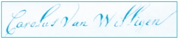 Signatuur van Carolus van Willigen. Uit het Oud Rechterlijk Archief Hoogwoud.