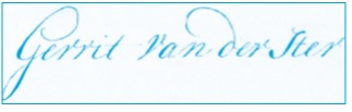 Signatuur van Gerrit van der Ster. Uit het Oud Rechterlijke Archief Hoogwoud.