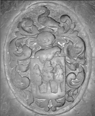Wapen van Michiel van Willigen op zijn grafzerk in de NH kerk te Hoogwoud