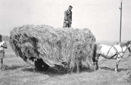 Het tiemen van het hooi