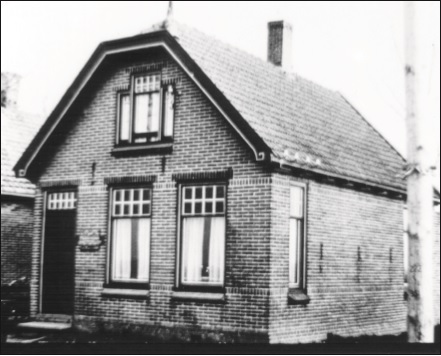 ‘Wij kwamen toen, rond 1930, te wonen in een huisje dat lag tussen de kerk en de molen (Burgemeester Hoogenboomlaan 12). Het huis was van de kerk. Mijn zus en ik sliepen boven, mijn ouders beneden in de bedstee. Naast ons woonde Jan Bos, zoon van de molenaar. Aan de andere kant was het werkmanshuis van de Willemshoeve, daarnaast woonde familie de Boer en daarnaast was het huis van de koster, de Ruiter. Die liep altijd in zichzelf te praten en te zingen, met zijn handen op de rug. Aan de overkant was weiland, daar had slager Davidson vee lopen. Bij het huis hoorde een redelijke grote tuin waarin veel vruchten groeiden, mijn moeder kookte hier jam van. Als er aardbeien waren, kregen wij hier maar nauwelijks van te eten, bijna alles werd verwerkt tot jam. In Hoogwoud ben ik nog twee jaar naar school gegaan. Tijdens mijn schoolperiode heb ik onder andere Toon Schermer en Adriaan Donker leren kennen. Lies Modder, Toos Kamp en Lien Davidson waren goede vriendinnen. In de school waren trouwens ook douches aanwezig, tegen betaling kon de bevolking hier gebruik van maken.’
