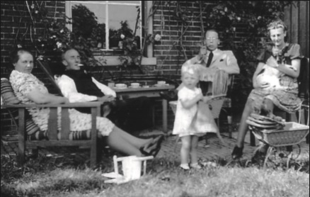 haar aanstaande schoonzoon Wim Ooijevaar en kleindochter Elly.