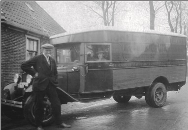 ‘Vader had ondertussen een nieuwe vrachtauto gekocht en was een koeriersdienst gestart, samen met Simon Kort uit Aartswoud, die op Alkmaar reed. Met grote letters stond er Hoogwoud-Amsterdam op de zijkanten van vaders auto. Hij haalde spullen op bij het Hoornse Veerhuis die hij dan naar Amsterdam bracht. Bij café Modder was een grote doorrijstal, daar parkeerde mijn vader zijn vrachtauto. Zijn compagnon Simon Kort woonde in de oude zuivelfabriek van Aartswoud. Zijn vrouw Griet had daar kostgangers, dit waren arbeiders die hielpen bij de drooglegging van de Wieringermeer.’