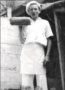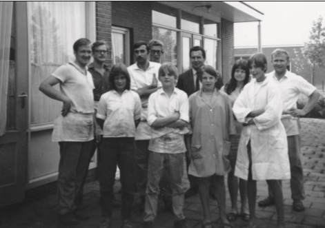 Personeel Heyne, juli 1968, voor de bakkerij op de hoek van de koningspade en de Westerboekelweg.