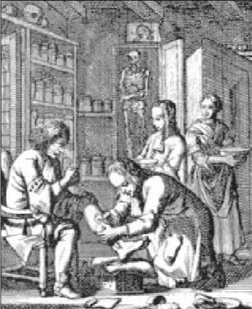 Het is wellicht interessant te weten dat in de 17e en 18e eeuw de barbiers hun vaardigheid in het hanteren van het (scheer)mes niet alleen beproefden op de baarden van hun slachtoffers, maar ook op hun bloedvaten: het aderlaten was een van hun erkende bevoegdheden. Wilden ze echter als Chirurgijn optreden, dan moesten ze eerst een soort bekwaamheidsproef afleggen, die hen wat meer armslag in de medische behandeling verschafte, zoals het helen van zweren en wonden, of zelfs het zetten van een breuk. Er bestonden toen ook al ‘echte’ doktoren, die hun kennis hadden opgedaan aan een Universiteit. Zo iemand zal Aartswoud echter wel niet rijk geweest zijn. Verder voorzag de door Diaconie of Armenvoogden verstrekte medische hulp in de betaling van een «doosje zalf» van 6 stuivers of de aanschaf van een «rijglijf» of «breukband», al naar gelang de behoefte van de zieke; ook bij geboortes wordt gezorgd voor een vroedvrouw of een ‘oppas’, terwijl ook bij sterfgevallen, zo nodig, de begrafenis wordt geregeld en de kosten ervan betaald.