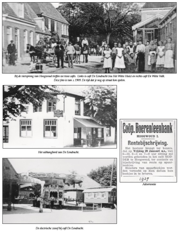 De Culturele Werkgroep Aartswoud organiseert al een aantal jaren in de zomermaanden een tentoonstelling in de Stompetoren van Aartswoud. In 2005 was het thema Cafés in en rond Aartswoud. Het was de bedoeling om de bezoekers een beeld te geven van de cafés uit vroeger tijden, toen men nog lopend of op de fiets naar de kermis ging in de omliggende dorpen. Veel van die cafés bestaan niet meer, maar de herinneringen blijven bestaan. In deze opzet is de Culturele werkgroep goed geslaagd gezien de vele positieve reacties die men mocht ontvangen. Uit de tentoonstelling willen wij u graag de collage laten zien van de cafés in het dorp Hoogwoud. We hebben getracht om de collage zo goed mogelijk op te nemen in deze uitgave.