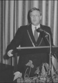 Burgemeester Maat bezig met zijn laatste rede tijdens de