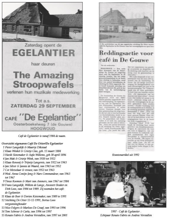 De Culturele Werkgroep Aartswoud organiseert al een aantal jaren in de zomermaanden een tentoonstelling in de kerk van Aartswoud. In 2005 was het thema Cafés in en rond Aartswoud. Het was de bedoeling om de bezoekers een beeld te geven van de cafés uit vroeger tijden, toen men nog lopend of op de fiets naar de kermis ging in de omliggende dorpen. Veel van die cafés bestaan niet meer, maar de herinneringen blijven bestaan. In deze opzet is de Culturele werkgroep goed geslaagd gezien de vele positieve reacties die men mocht ontvangen. Uit de tentoonstelling willen wij u graag de collage laten zien van de cafés in het buurtschap De Gouwe.