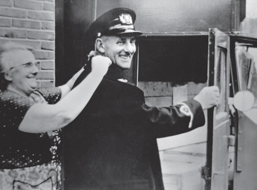Arie Modder krijgt zijn jas aangereikt door zijn vrouw