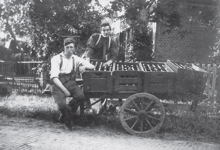 Het bier bottelen dat hij in de Langedijk had geleerd, kwam hem hier ook goed van pas. Het kan best zijn dat hij het één en ander aan materiaal heeft overgenomen van zijn vroegere werkgever. Hij is ermee begonnen in de stallen van zijn vader (in de Eendracht dus) in Hoogwoud. Later is hij gaan samenwerken met Cor Bakker. Weer later, nadat de garage was gebouwd, is alles verplaatst achter de garage van Modder & Bakker. Hoe ging dat bottelen in zijn werk? Het bier werd bezorgd in grote houten vaten en dan moest alles in flesjes worden getapt. Het lijkt eenvoudig maar die flessen moesten natuurlijk eerst gereinigd en gedroogd worden. Met de middelen van nu is dat een vrij eenvoudige klus. Maar toen was dat erg bewerkelijk. Gebruikte flessen werden eerst in de week gelegd, daarna van binnen een paar maal gespoeld en dan moesten ze uitdruipen aan een speciaal soort druiprek. Waren ze droog, dan mochten ze gevuld worden. Dat was dan bier aangevuld met koolzuur, hier was dan weer apparatuur voor. Voor je de flessen ging vullen hield je ze tegen het licht om te kijken of ze goed schoon waren. De flessen die de proef niet doorstonden, moesten opnieuw de reinigingsbak in. Waren de flessen gevuld dan moest er nog een etiket op. Nu zou dat machinaal gaan, toen ging dat met de hand. De etiketten waren er wel, maar er moest nog stijfsel op om dan op de flessen te worden geplakt. Ze hadden verschillende soorten bier; licht bier, bruin bier en stout bier en alle soorten hadden een eigen etiket. Waarom alles in flessen? Eigenlijk is dat vrij eenvoudig, de cafés hadden in die tijd nog geen tap en zelf bottelen was te bewerkelijk. De flessen waren meestal beugelflessen of kogelflessen. Ook werden er flessen gevuld met cider, grenadine en ranja. En die natuurlijk elk weer met een eigen etiket. Ze zullen wat schoongemaakt en afgeplakt hebben in die tijd. Dit werk deden ze dan natuurlijk niet alleen voor de cafés in Hoogwoud, maar ook in de buurgemeenten. Later kwam de biertap in bedrijf en Arie Modder en Cor Bakker waren dan meestal met evenementen en kermissen de tappers bij hun klanten (ik ben hen wel eens tegen gekomen in Zuid-Scharwoude en Oudkarspel). Toen Arie Modder en Cor Bakker ophielden met hun samenwerking, ze hadden toen de bottelarij en de garage, ging Arie alleen verder met de bottelarij in zijn eigen pand achter de fietswerkplaats aan de Kerkelaan (Burg. Hoogenboomlaan 51), tot hij die in 1948 verkocht aan de mineraalwater fabrikant Klaas van der Woude in Hoorn. Arie Modder verkoopt dan: ‘een gedreven Bierbottelaarszaak, alsmede zijn mineraal-water-bedrijf, met de daartoe behorende inventaris, bestaande uit: twee tapmachines, imprieer-machine met motor en drijfwerk, flesschen, kisten, enzovoorts, alsmede de goodwill.’