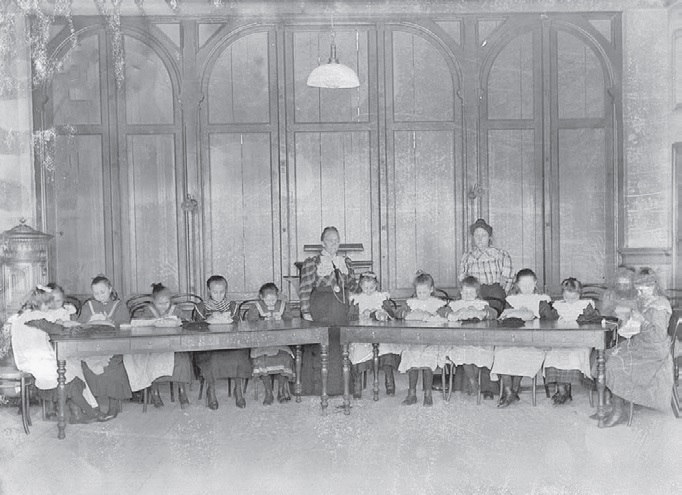 De eerste schuchtere stappen werden gezet in 1866. In een vergadering van kerkmeesters en notabelen op 26 April werd door «den voorzitter de oprigting van een breien naaischool ter kennisse gebracht, met het voorstel om de Catechizatiekamer daartoe te gebruiken». Dit voorstel wordt met algemene stemmen aangenomen. Het begin is er dus, maar het zal nog jaren duren vóór er een grootser geheel zal komen.