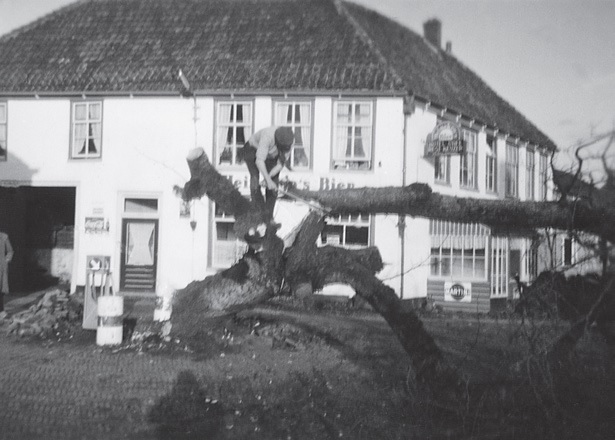 Het omhalen van de Hoogwouder lindeboom in 1960.