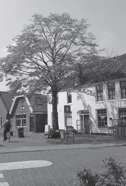 Links op de viersprong de oude Hoogwouder linde.