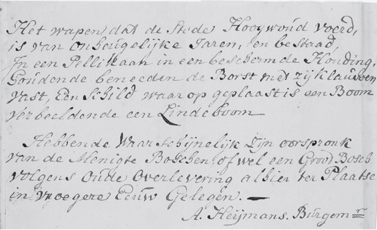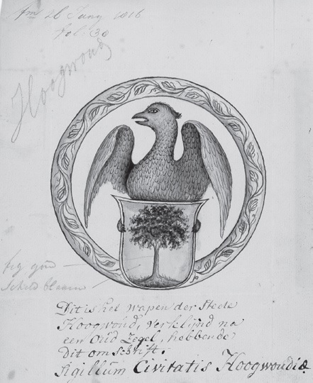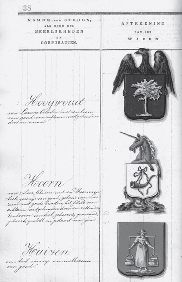Het wapen van Hoogwoud zoals het in 1816 werd toegekend.