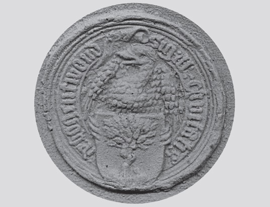 Gipsafdruk van het zegel op de luidklok.